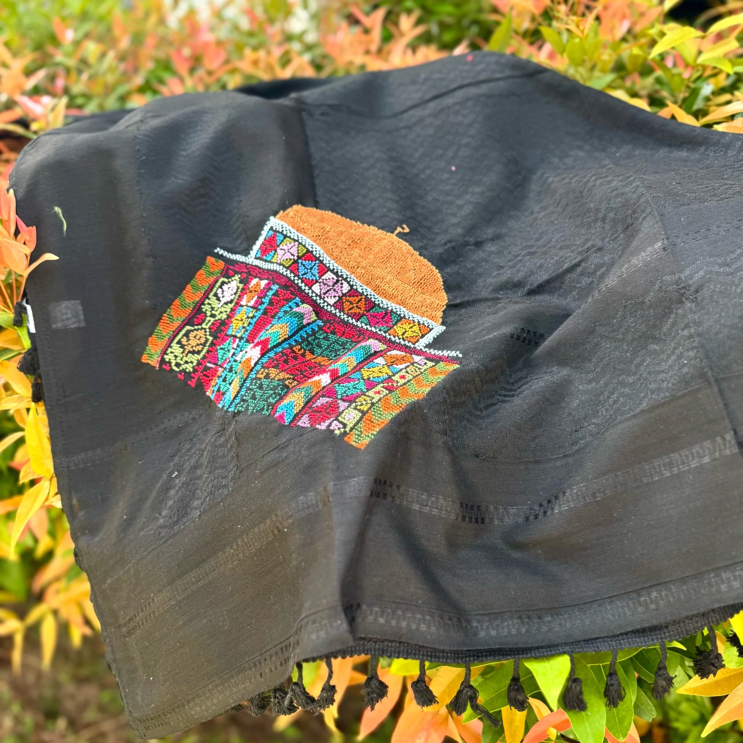 Pure Black Hirbawi Keffiyeh with Tatreez by Darzet Thoub Ladies
