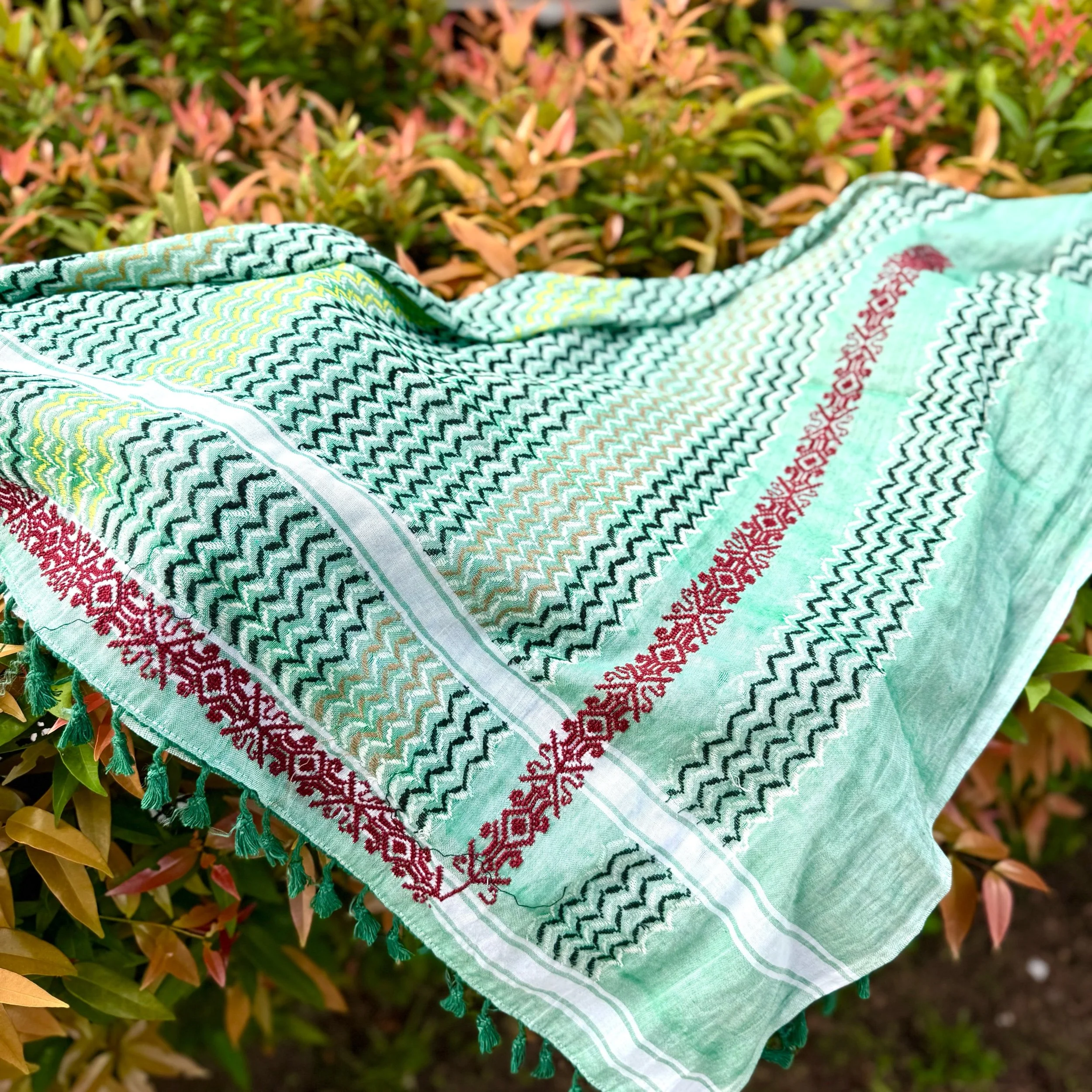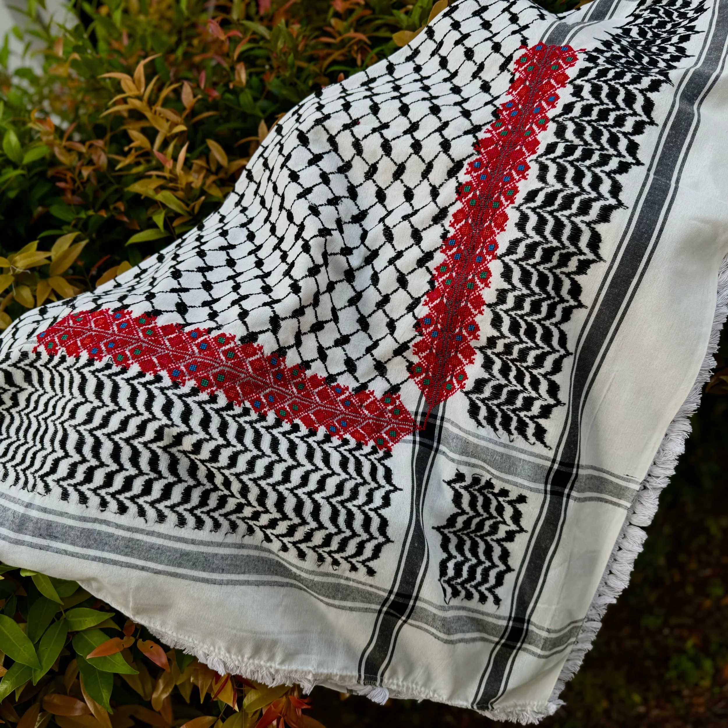 Dheisheh Hirbawi Keffiyeh with Tatreez by Darzet Thoub Ladies