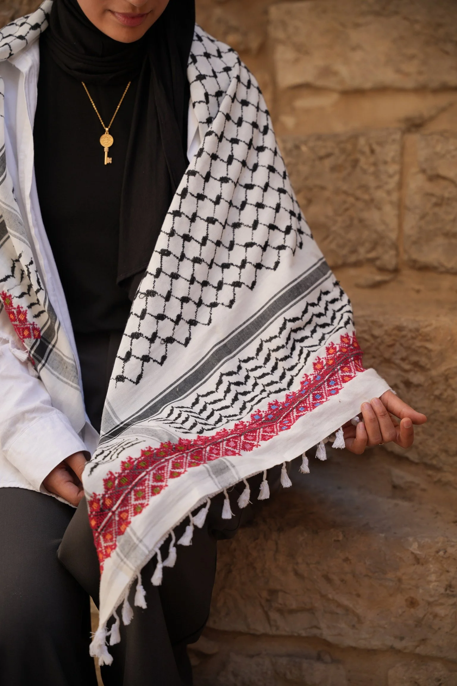 Inverted Hirbawi Keffiyeh with Tatreez by Darzet Thoub Ladies